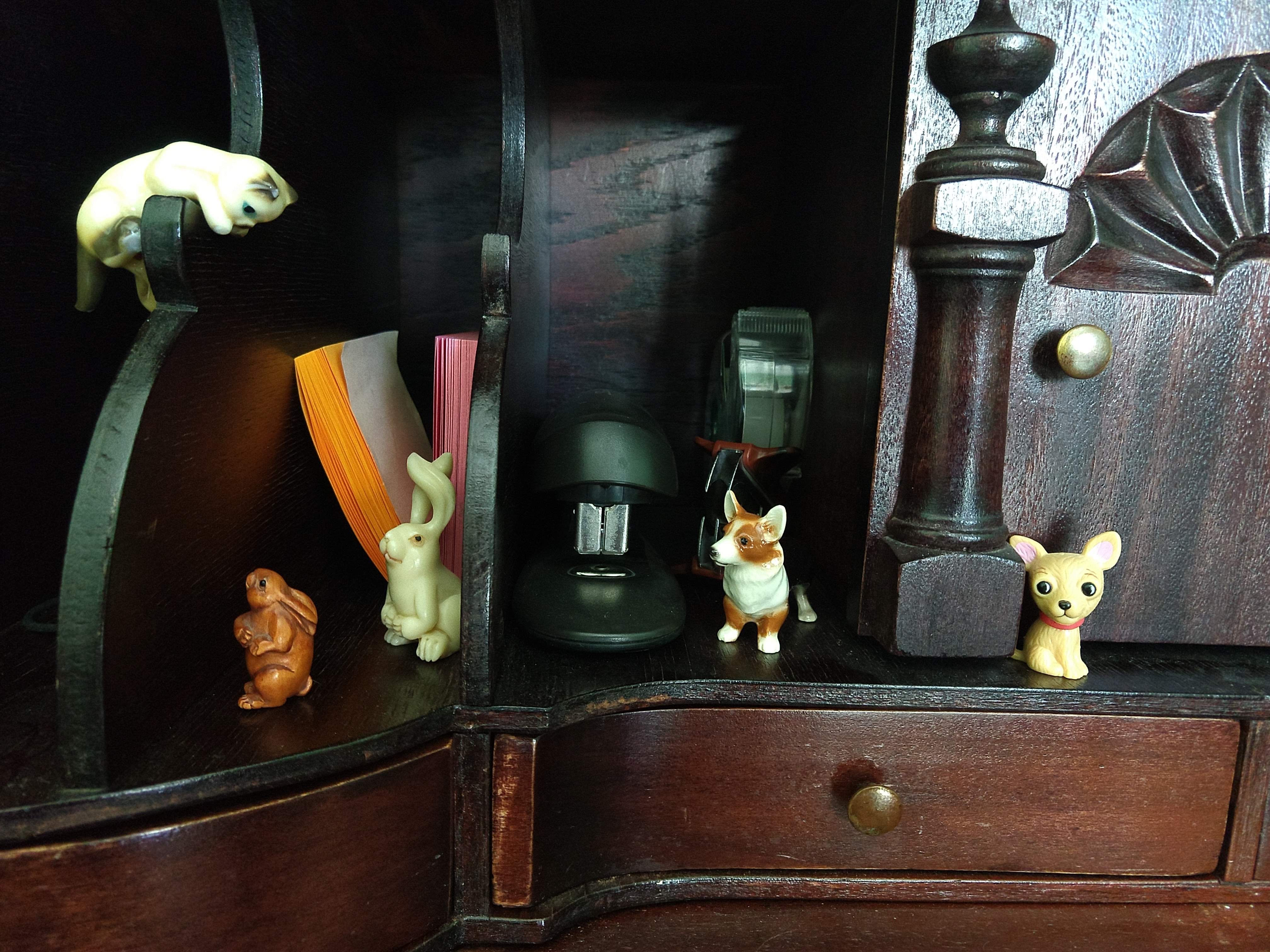 I ran across a box of little animals I’ve accumulated (Hey, it happens.) and set them up in a little tableaux.